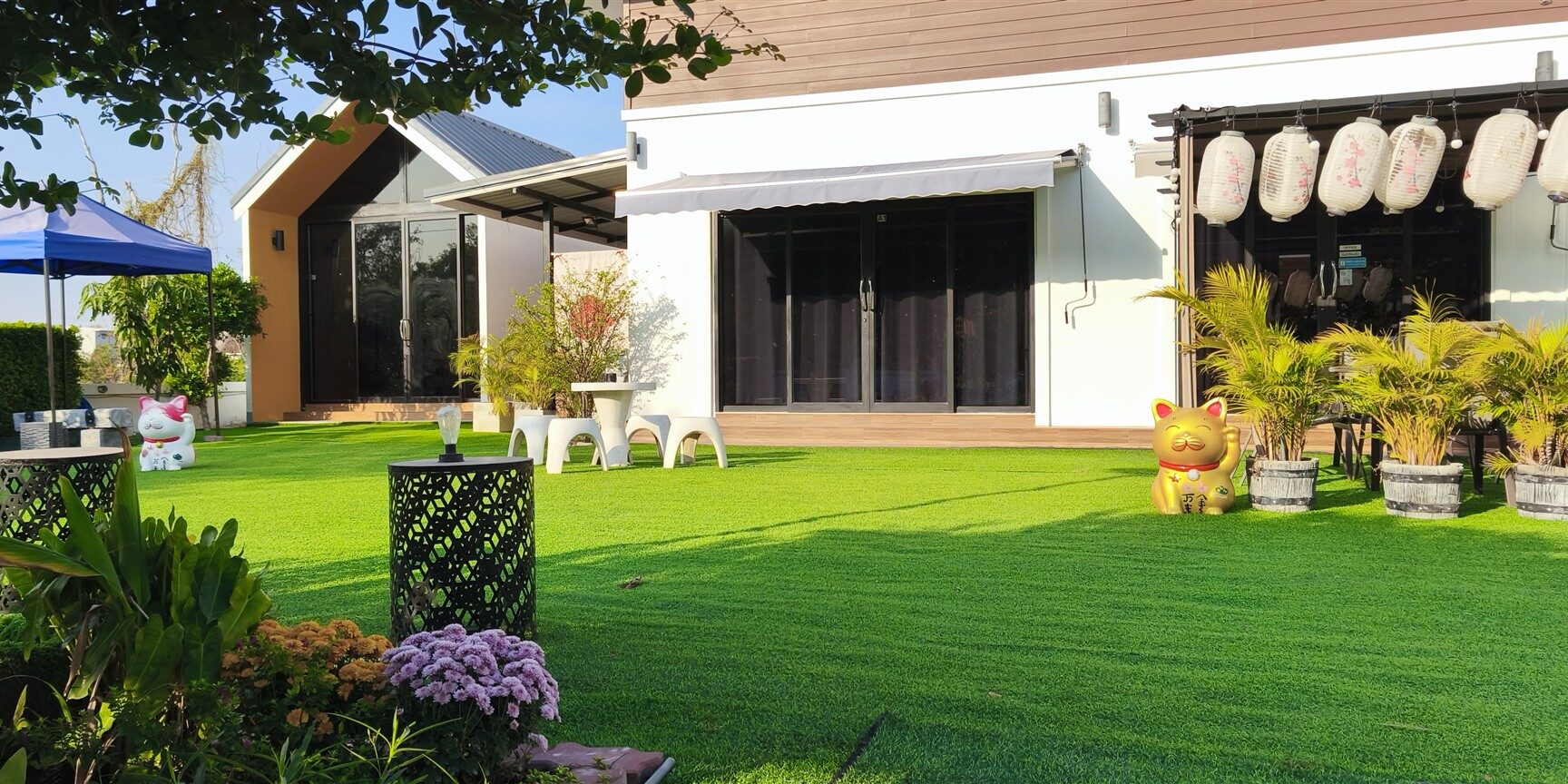 “A1″ห้องพักติดสนามหญ้าและต้นไม้ใหญ่ เป็นห้องยกพื้น หน้าบ้านจะเป็นที่นั่ง ที่กินข้าว ดื่มชากาแฟ ไว้นอนอ่านหนังสือได้สบายๆ ขนาดพื้นที่ห้อง 20ตรม.